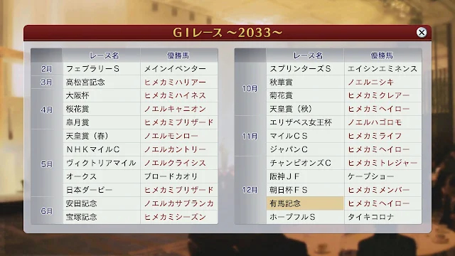 【Winning Post 8 2017】ノエル系プレイ(2033年)