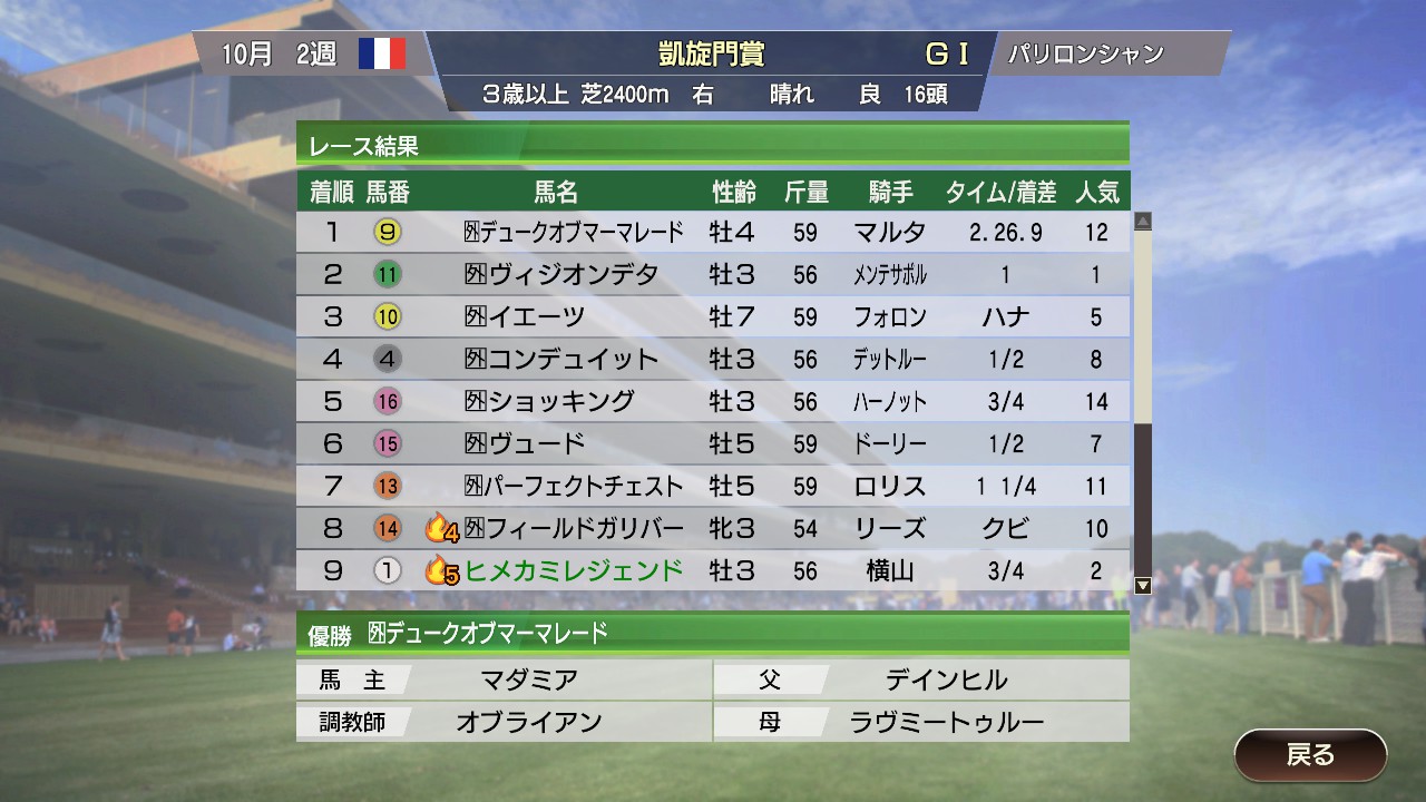 この2頭の場合、2歳時に海外遠征しても初戦が人気薄となって「大駆け」が付くことはありませんでした。前作までと違って、外国の人にも正当に実力が評価されるようになっているみたいです。