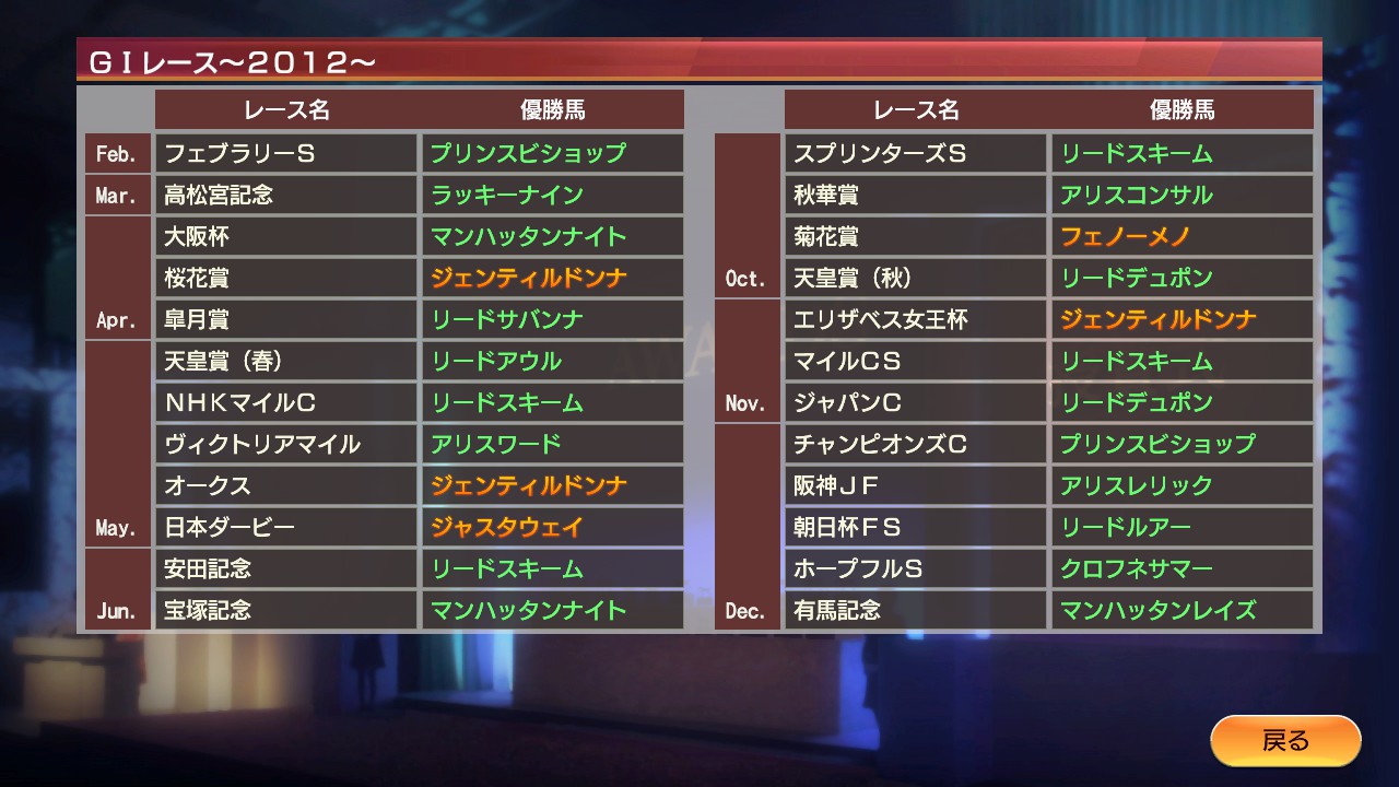 その後、芝路線に行き秋華賞でジェンティルドンナ(ディープインパクト×ドナブリーニ)の牝馬3冠を阻止してリードスキームをアシスト。