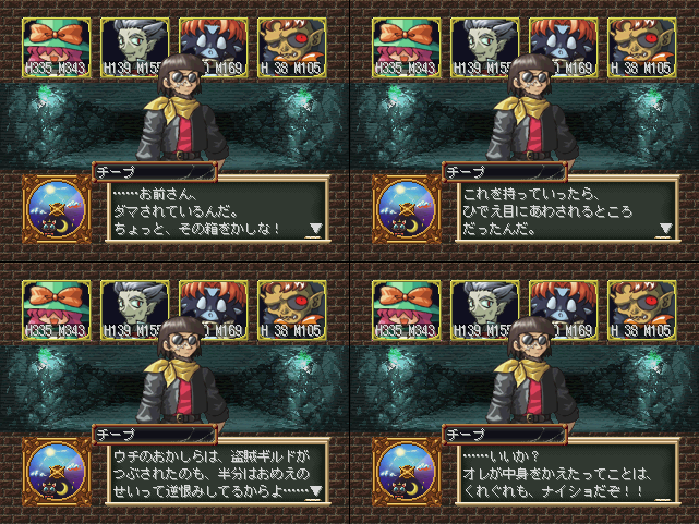 弱そう(LV50)。指定の場所へ向かうと、いかにも怪しい人物がいました。そこで受け取ったよごれた箱を「炎壁の間」まで持っていき、その後はそこにいる人物の指示に従えとのこと。