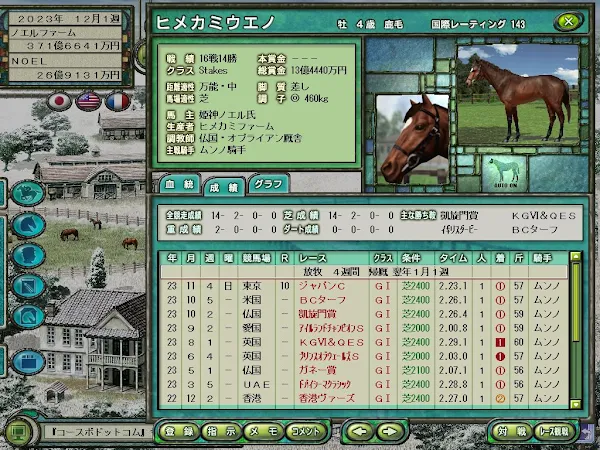 その他の血統では、欧州のヒメカミウエノが各地を回って8戦全勝。国際レーティングは史上最高の143になりました。なお歴代のランキングは1月3週のコースポでしか確認できません。